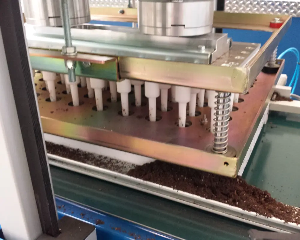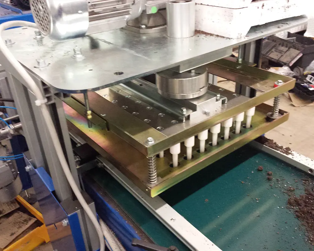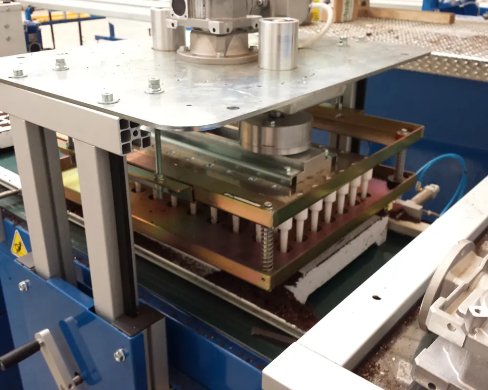 These tips create evenly spaced holes in the soil, ready to receive seeds in the next stage. The process is fully automated and can be integrated into seeding lines, ensuring greater speed, uniformity and sowing precision in the hortofloriculture sector.