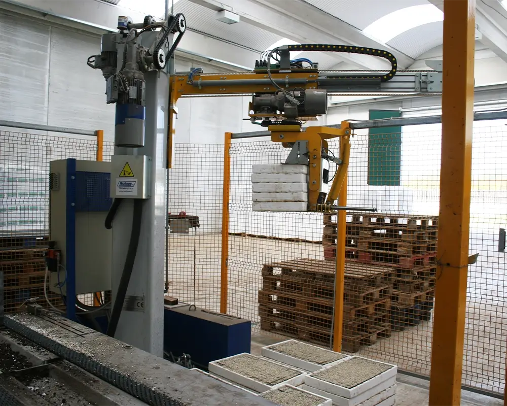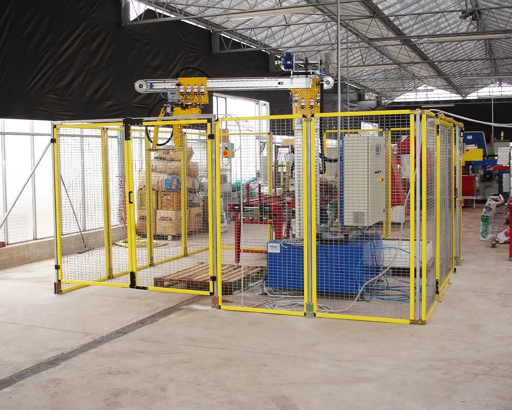 Compactness and Efficiency: This machine is extremely compact and uses robot gantry technology to work in rotation. This allows i-Pallet to reach every necessary point while occupying minimal space.