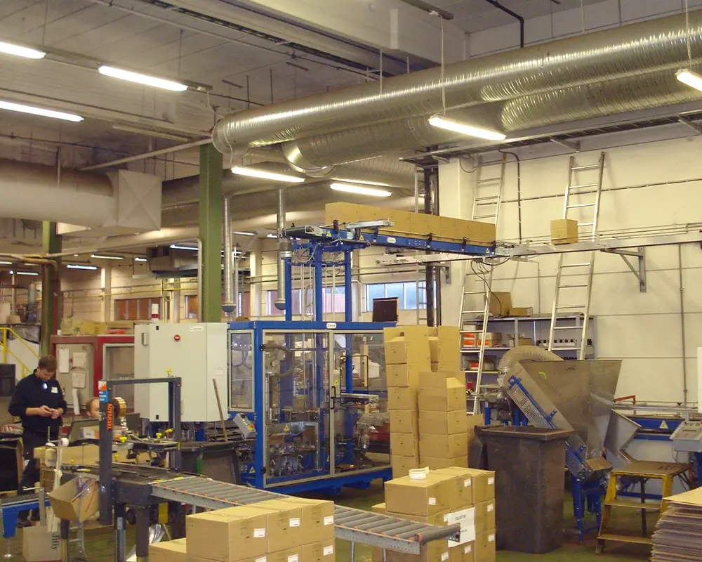 Automatic Packing: A mechanical arm picks up the discs and places them into cartons, creating perfect layers and optimising space.
