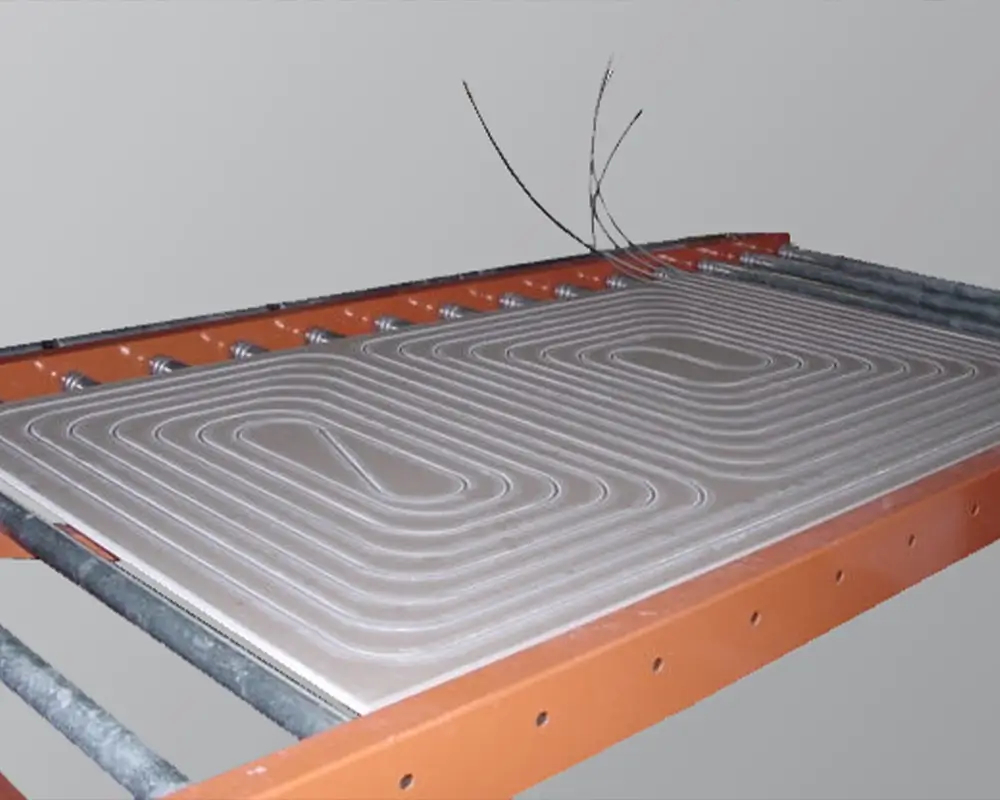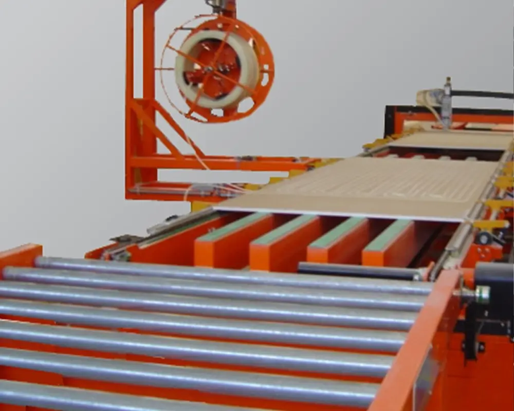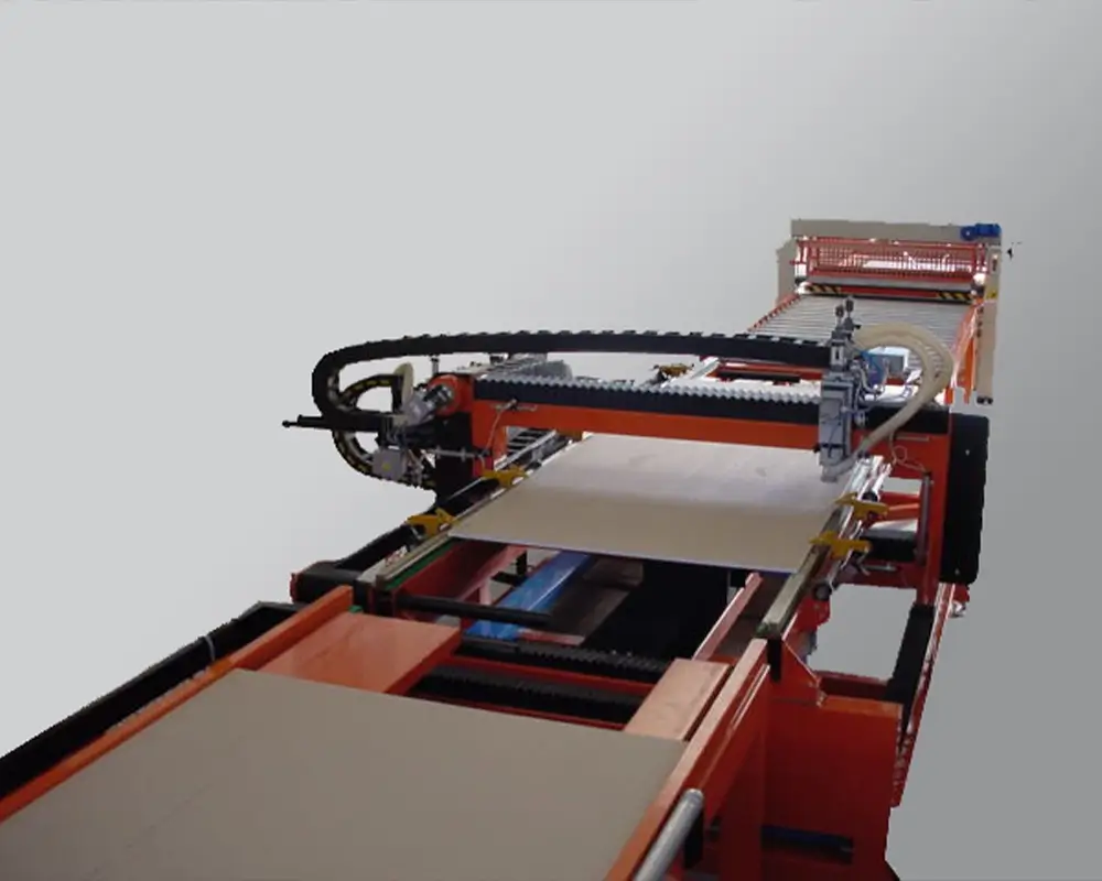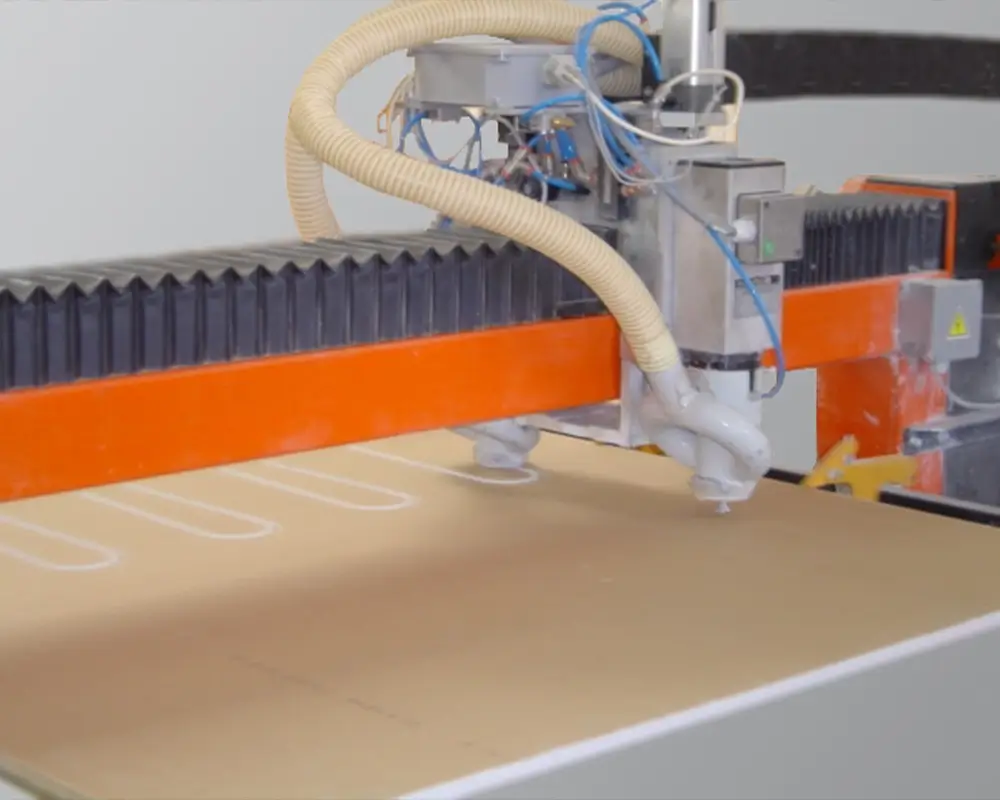 Machine suitable for milling to a drawing of the radiant coil of plasterboard panels used in construction to create radiant wall and ceiling systems. The machine can cut the panel to size, insert the pipe , mark the serpentine on the opposite side of the panel so that any fastening needs will not hit the pipe serpentine, and glue the insulating polystyrene that holds the pipe in the panel.